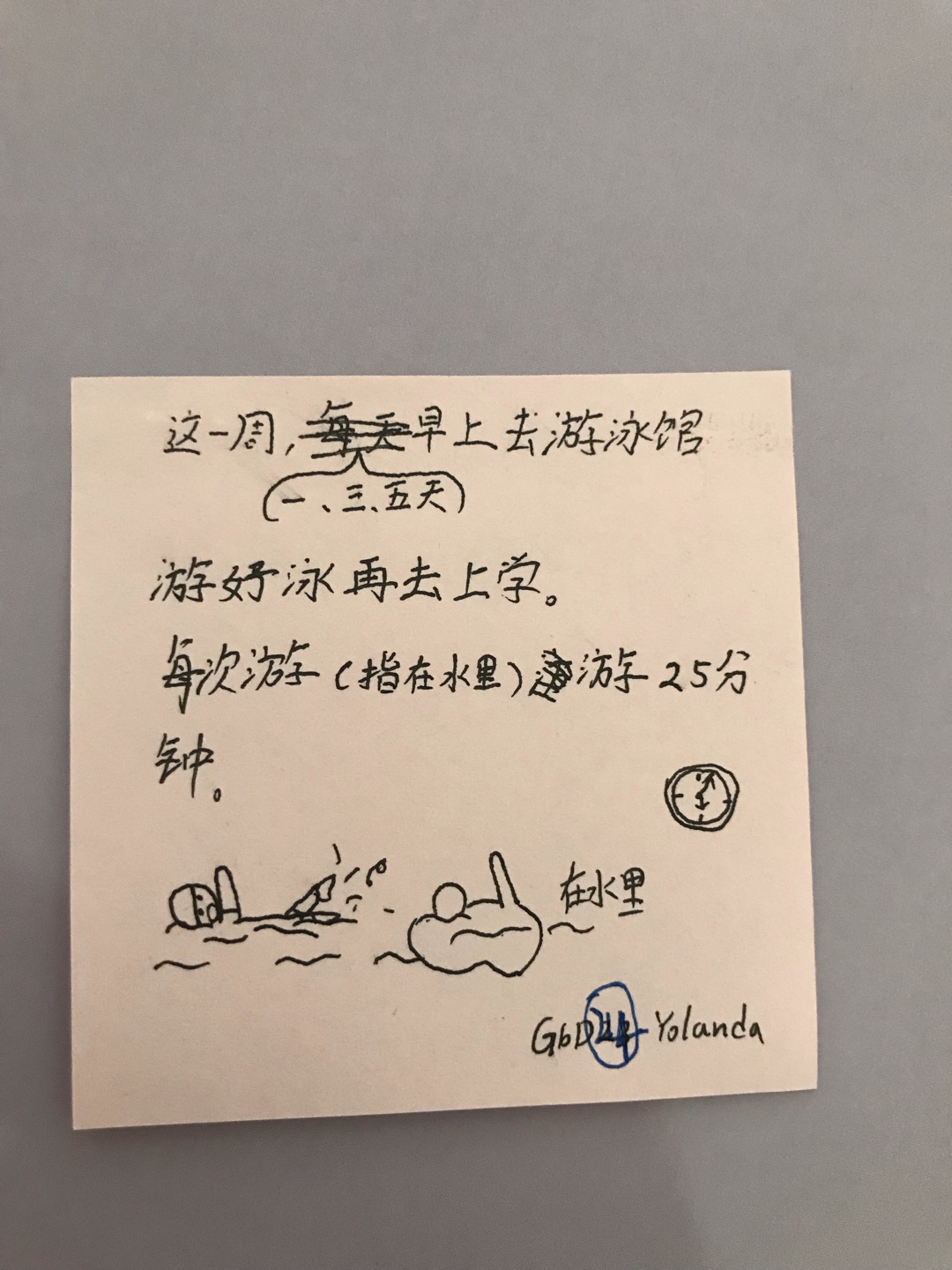 Yolanda写的周目标,她所在班级,每个同学每周都要给自己设定小目标