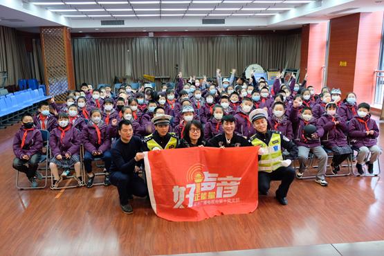 陈和焕警官和邱丽蓉警官一起带来了《电动车大拇哥》手势操表演,邀请所有同学一齐动起来,让同学们在欢声笑语中将交通安全知识牢记于心。