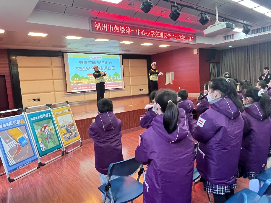 2月9日上午,福州市鼓楼第一中心小学迎来了几位可亲可敬的“大朋友”,他们是来自福州市交警支队鼓楼大队和主持人叔叔阿姨们。
